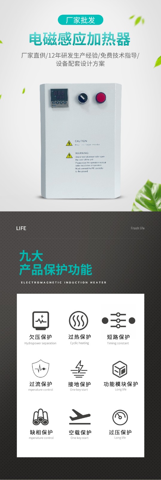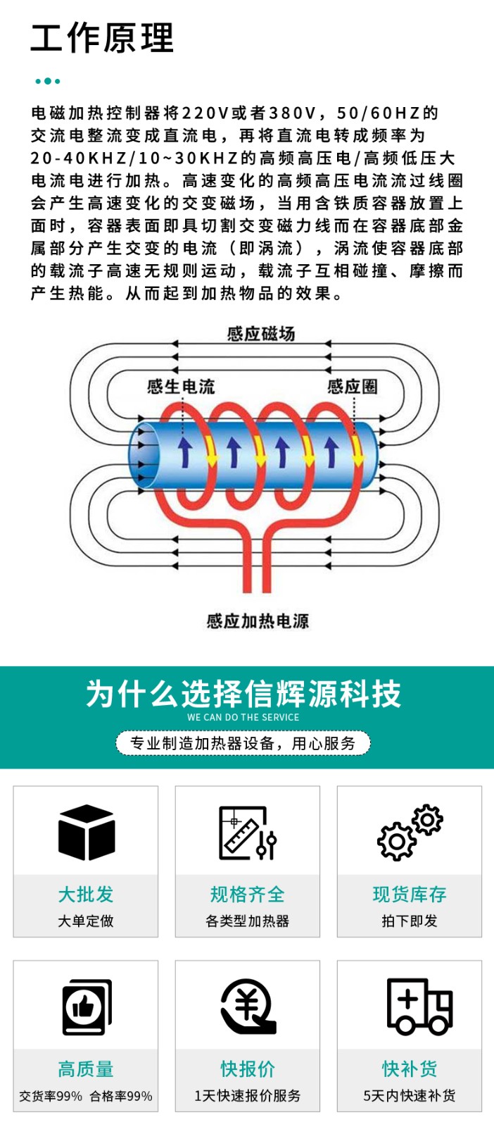 应用领域编辑1、工业高效加热设备:如塑胶机械注塑机、造粒机、吹膜机、挤出机、 拉丝机、中空成型机等的节能改造2、民用加热产品:如电磁热水器、电磁热水管道、电磁热水瓶等高效加热电器